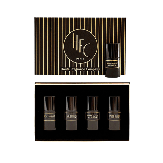 Discover the magic of the HFC Paris Collection through this special gift box, each one a doorway into a world of elegance. With a captivating Indian Venus shower gel and a travel set with 4 x 15 ml mini perfumes, there is a beautiful fragrance waiting to delight every perfume lover.