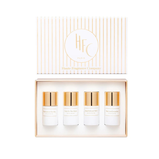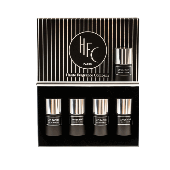 Want to surprise yourself or a loved one with a scented gift? This gift box contains 2 HFC Paris travel sets (For Him & For Her), each including 4 beautiful travel sizes of 15 ml. The For Her travel set includes: 1x the powdery Wear Love Everywhere, 1x the woody and amber Diamond in the Sky, 1x the citrusy Party on the Moon, and 1x the floral Beautiful and Wild. The For Him travel set includes: 2x the amber and woody Lover Man and 2x the spicy and aromatic Or Noir.